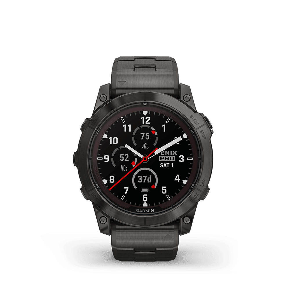 - Smartklokke med GPS for multisport, med en 1,4’’ skjerm i en robust 51 mm urkasse av fiberforsterket polymer med titanramme og bakdeksel.