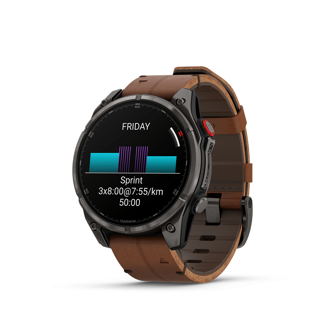 • fēnix® 8 Pro er varme- og støtbestandig i henhold til MIL-STD 810 og har et metalldeksel som beskytter viktige sensorer mot skader og slitasje under de tøffeste turene
