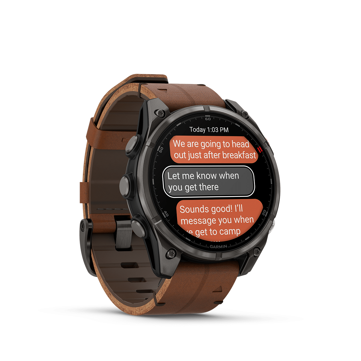 • Med LTE-nettverkstilkoblingen kan du legge igjen telefonen hjemme og bruke smartklokken til å sende og motta meldinger og ringe. I tillegg kan vennene dine følge deg med LiveTrack™-posisjonsdeling (oppdateres hvert 30. sekund) og posisjonsinnsjekking med Garmin Messenger™-appen på enheten (krever aktivt abonnement. Jurisdiksjons- og dekningsbegrensninger kan gjelde1).