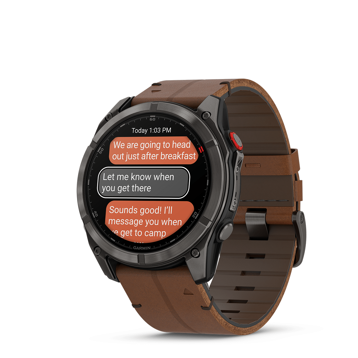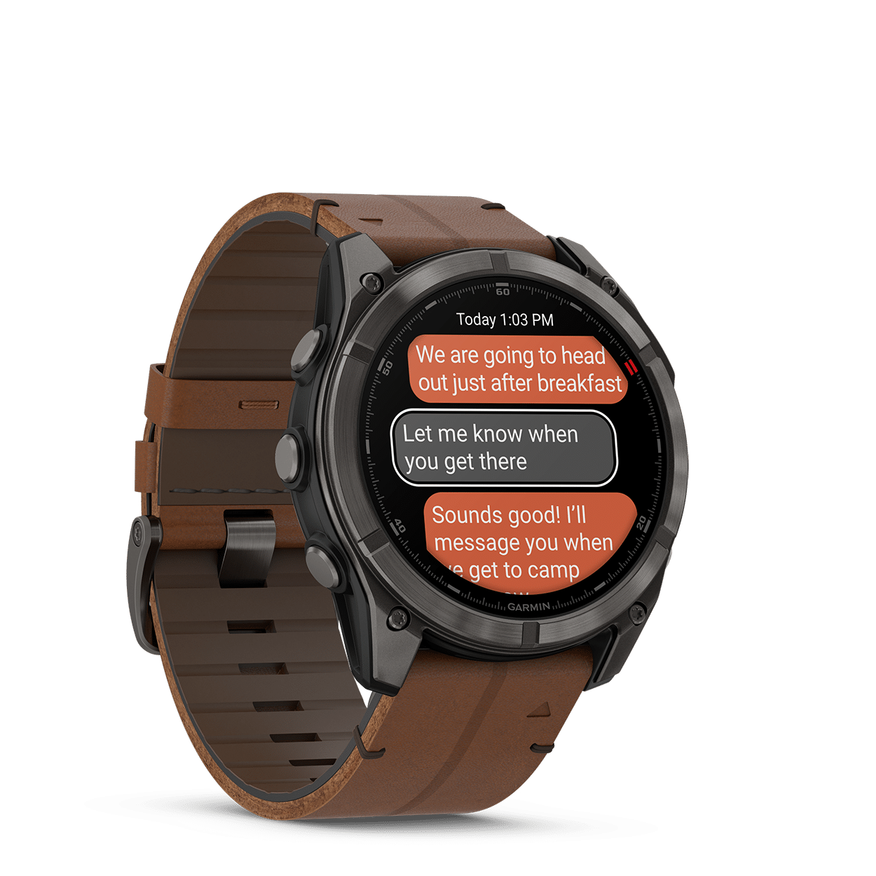 - Med LTE-nettverkstilkoblingen kan du legge igjen telefonen hjemme og bruke smartklokken til å sende og motta meldinger og ringe. I tillegg kan vennene dine følge deg med LiveTrack™-posisjonsdeling (oppdateres hvert 30. sekund) og posisjonsinnsjekking med Garmin Messenger™-appen på enheten (krever aktivt abonnement. Jurisdiksjons- og dekningsbegrensninger kan gjelde1).