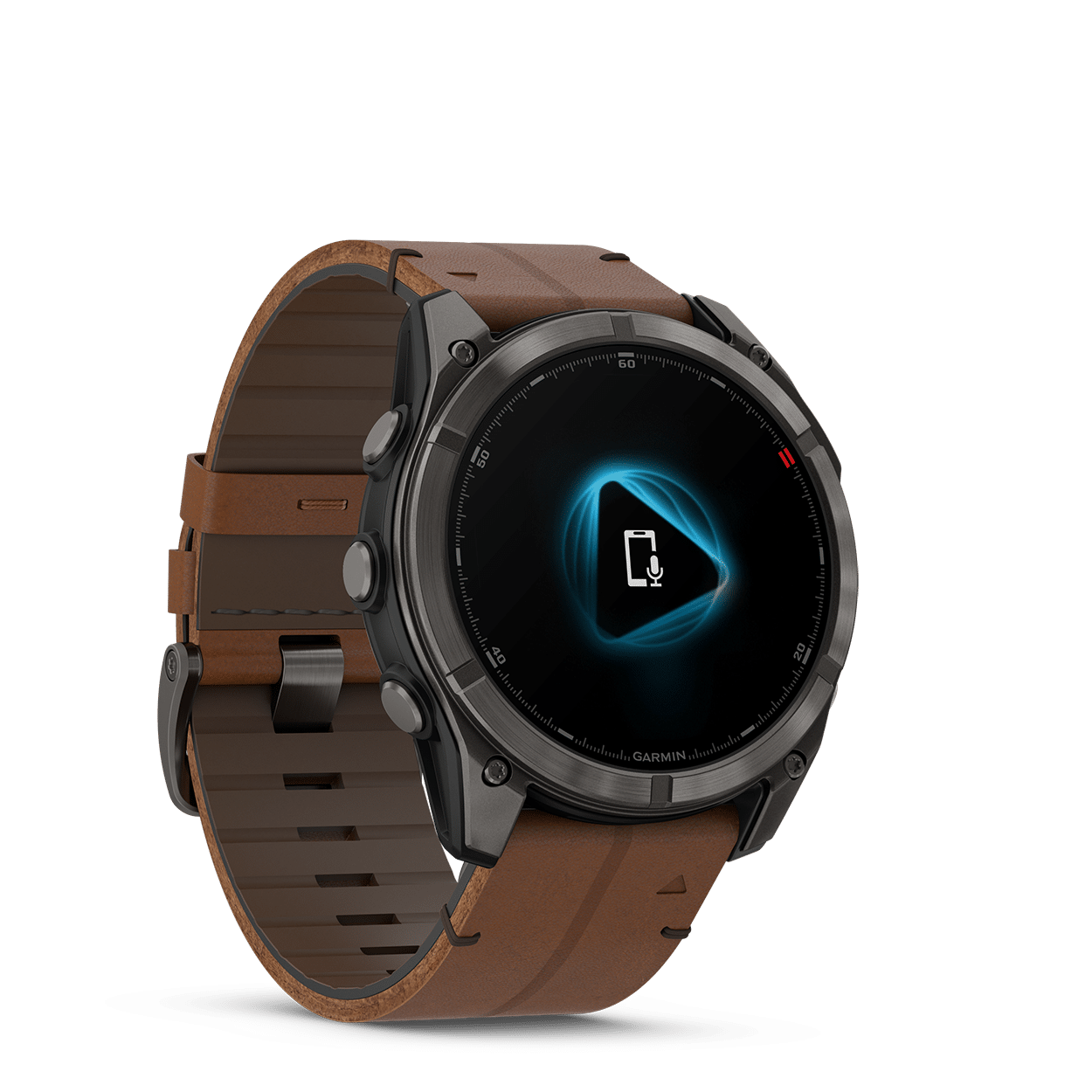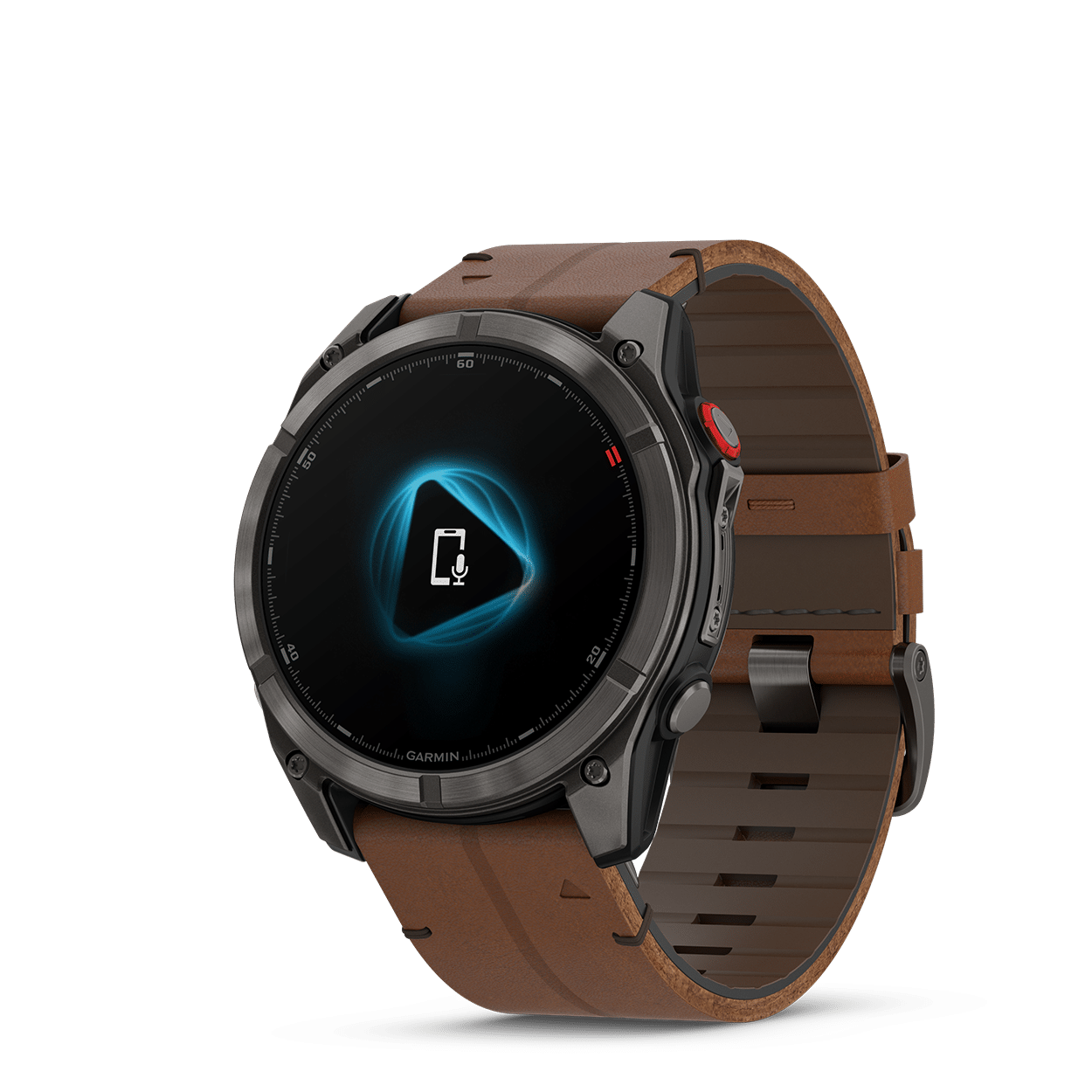 - Robust design med lys 1,4″ (35,56 mm) AMOLED berøringsskjerm, titanbesel, ripebestandig safirlinse og andre premium materialer